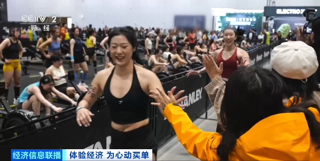 总台央视记者 苏童:场上绝大多数的“运动员”,实际上都是生活中最普通的健身爱好者,他们付费来参加这场比赛,不只是为了成绩和奖牌,更多的是感受这里的氛围,突破自己的勇气,还有收获一段拼搏故事。HYROX提供的不只是一段比赛,更是一场体验,以及围绕这个体验不断延伸的消费链条。