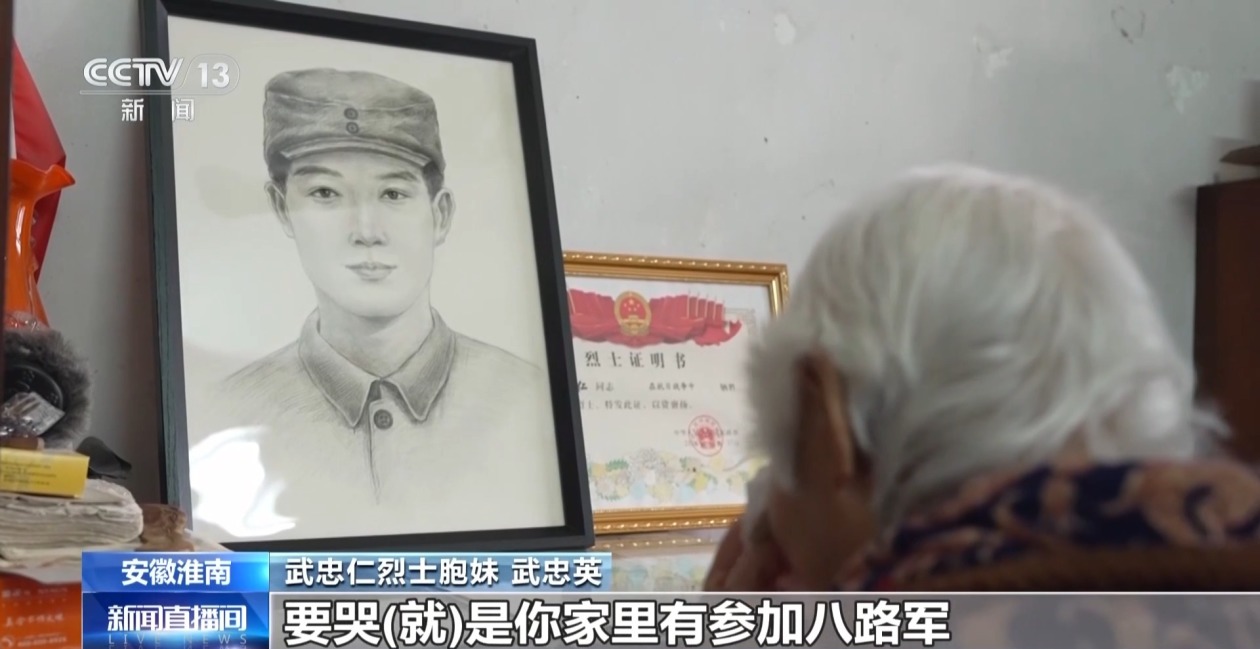 清明将至,就在前两天,家住安徽淮南的92岁老人武忠英,收到了一幅刚完成的烈士画像,画中人是她的大哥武忠仁。1938年,16岁的武忠仁在山东老家参加革命,加入抗日队伍。此后,家人只听说他牺牲了,便再无音讯。
