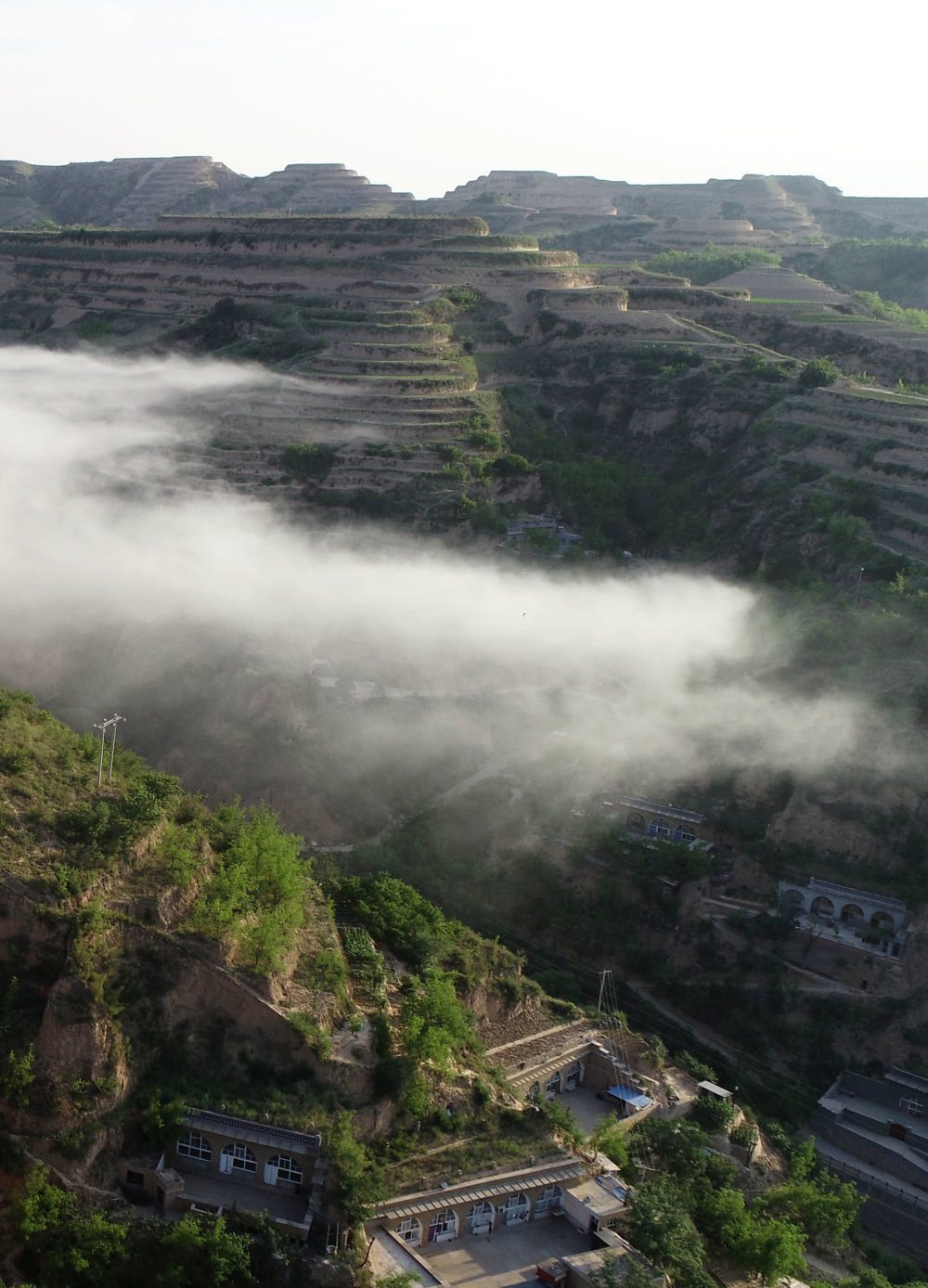 晨雾中的绥德县郝家桥村(2022年6月17日摄,无人机照片)。 新华社记者 陈昌奇 摄