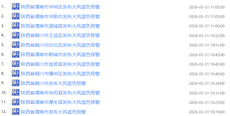 3月31日上午,记者从陕西省气象局了解到,陕西多地已发布大风蓝色预警↓↓↓